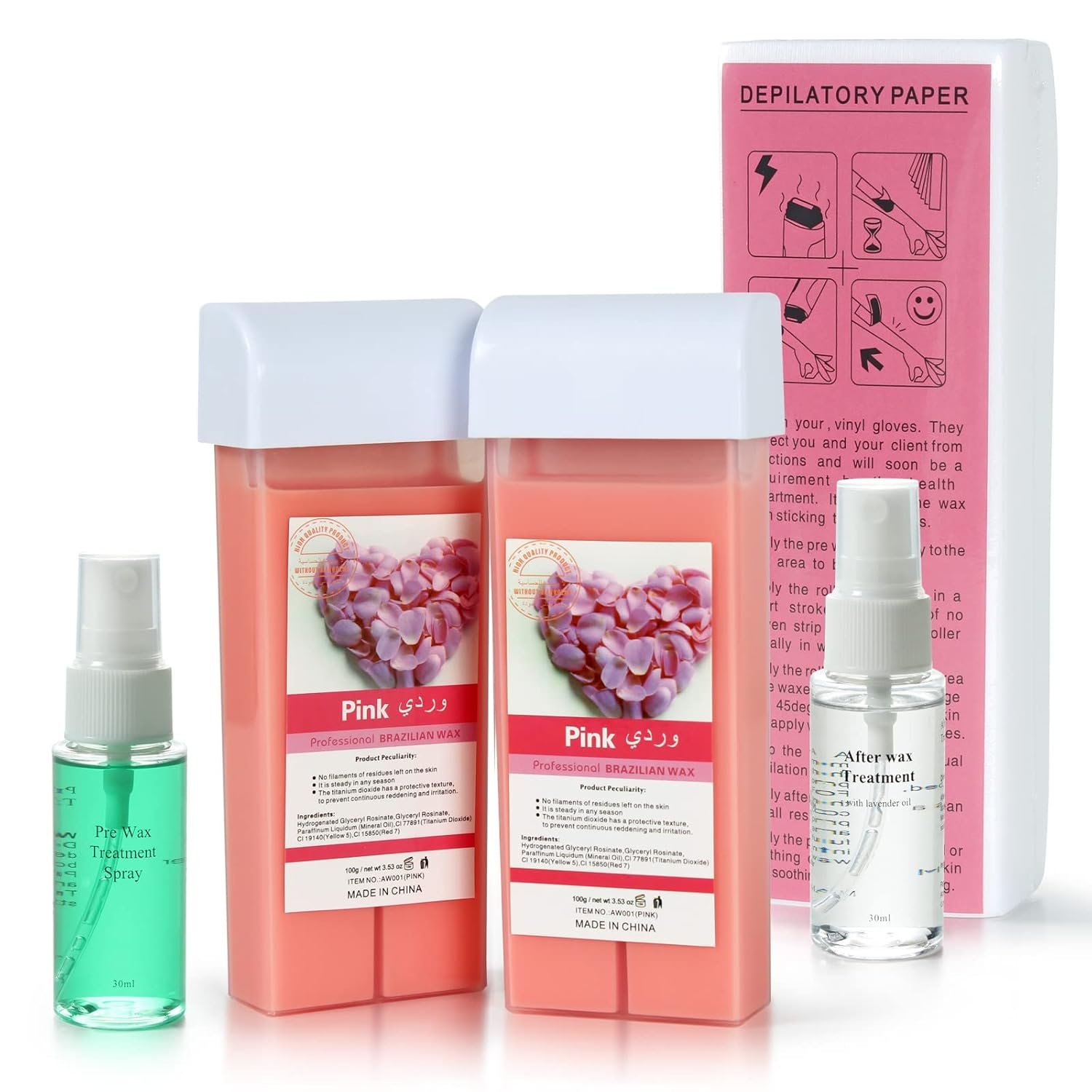 Beth Lee Roll On Waxing Kit, 2 Packs Rose Wax and 100 Wax Strips Refills For Legs, Arms and Underarm